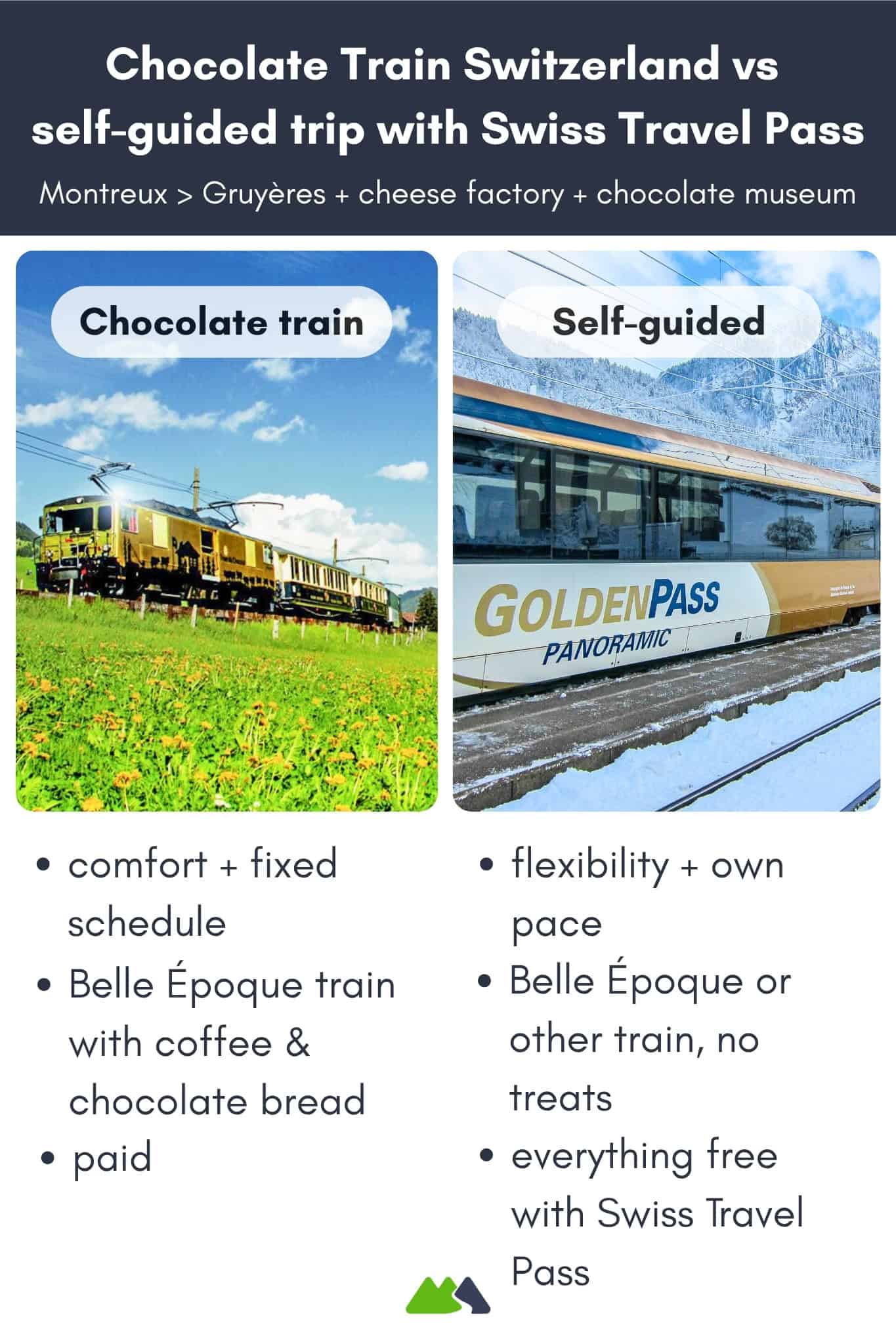 - It can be cheaper to plan your own trip. The Chocolate Train trip is more expensive than the regular costs of return train tickets from Montreux and the entrance tickets of both museums.