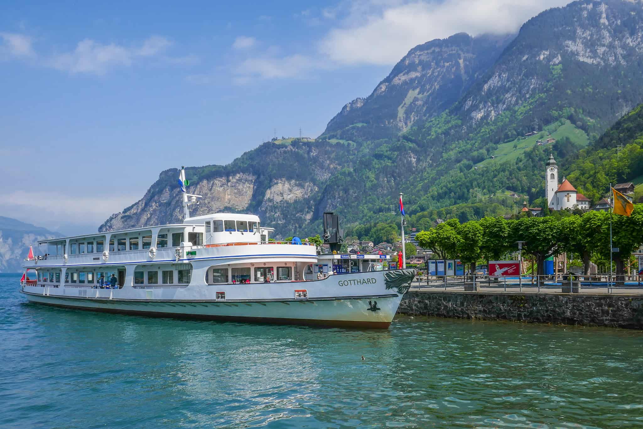 In most cases, a nostalgic steamboat operates as the Gotthard Panorama Express boat. But sometimes a motor boat is used instead.