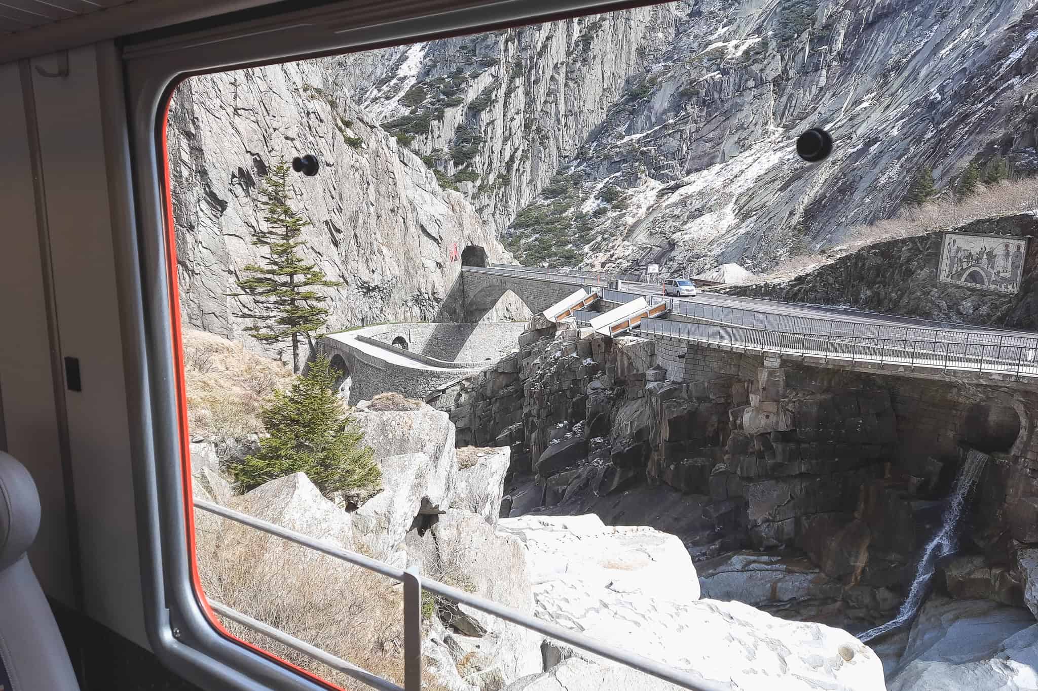 Note that the official Gotthard Panorama Express train doesn’t stop in Göschenen. But you can take regional trains, called “Treno Gottardo”, on the exact same route.