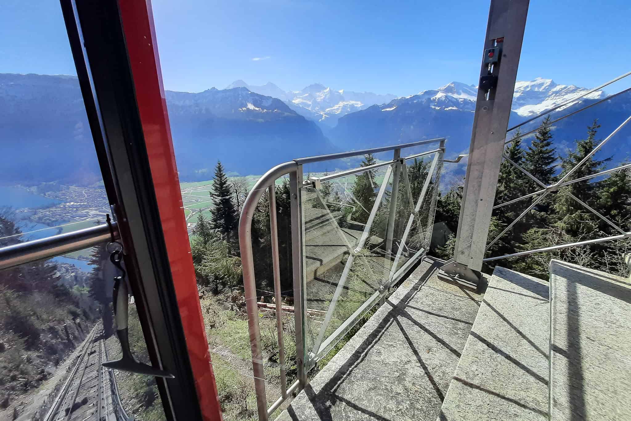 The tracks run through a forested area, so there's no continuous view. Yet, you can see the views slowly unfold, and as soon as you reach the Harder Kulm top station there's a gorgeous panorama.