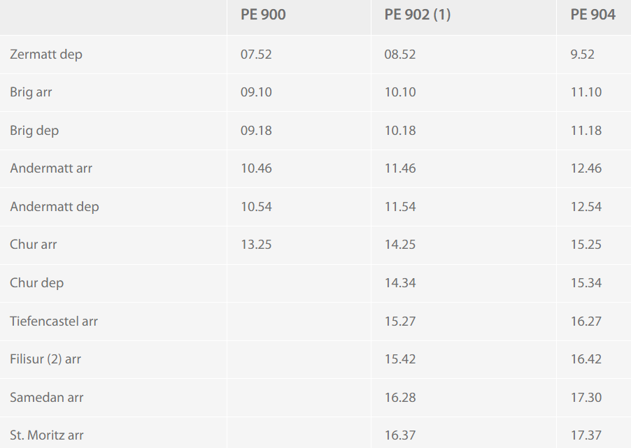 2) train no 906 depart from Chur at 18:58 and it’s running till 12th of October only;