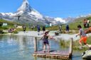 Head for Leisee on Sunnegga. It’s just a short funicular ride up from Zermatt and then a short walk from the Sunnegga station to the this small lake with an amazing view of the Matterhorn. There is a restaurant with a big terrace overlooking the Matterhorn too. This lake is quite popular and does get crowded as it is the easiest to get to. About CHF18 return (half price with the Swiss Travel Pass or Swiss Half Fare Card).