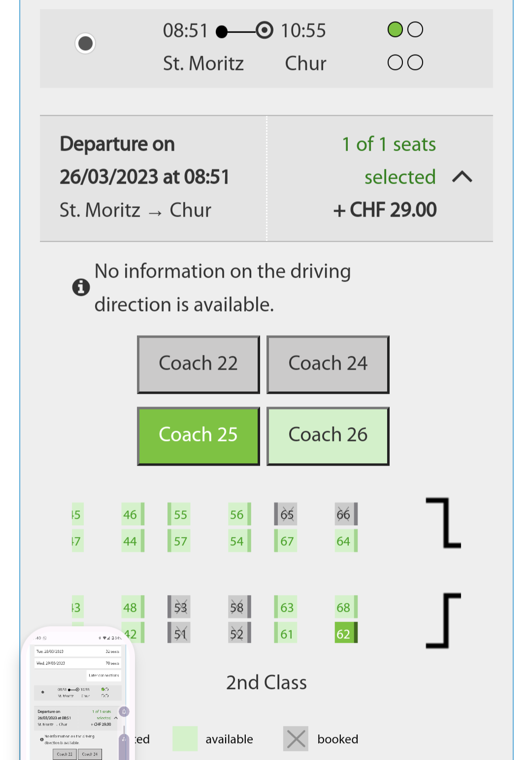 Also while booking Glacier express I was shown to book seats from Carriages 22-26. I wonder if the actual train is that long or nomenclature of the Carriages is such.(Image attached)