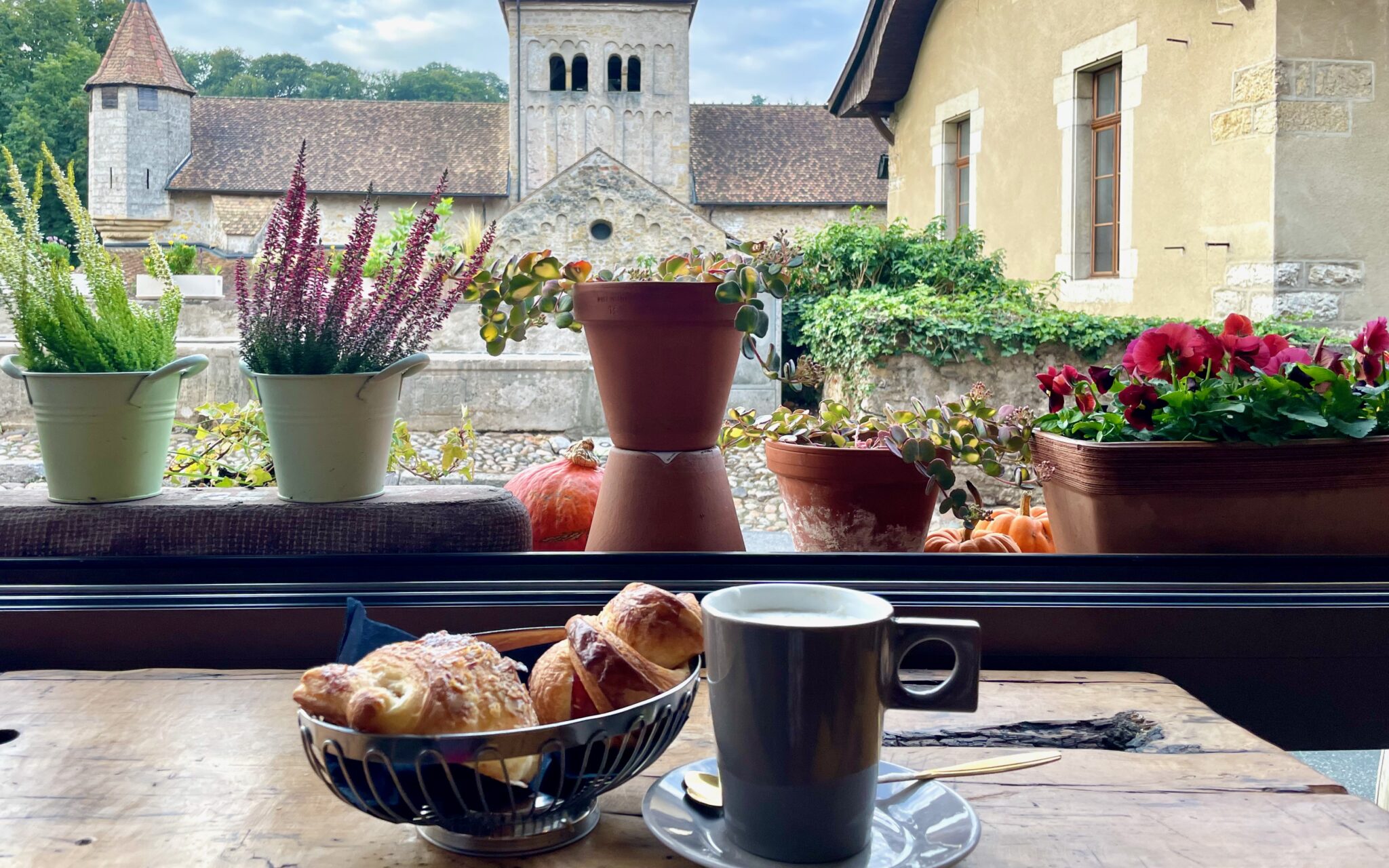 We’ve been visiting Romainmôtier for years and feel at home here, sharing a drink with locals in the pub after dinner, returning to my favourite café to breakfast on excellent croissants, and visiting a nearby mountain chalet for great fondue. But I’m getting ahead of myself.