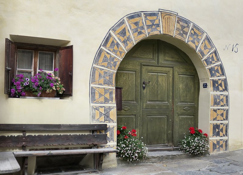 Pontresina is nice, but I would prefer visiting the village of Guarda, which is smaller, more beautiful and more intact, with lovely views from its perch on the mountainside. (Destination to plan for: Guarda, cumün). You get the train to Guarda station, then there is a small bus that meets the train to transport passengers up the mountain to the village.