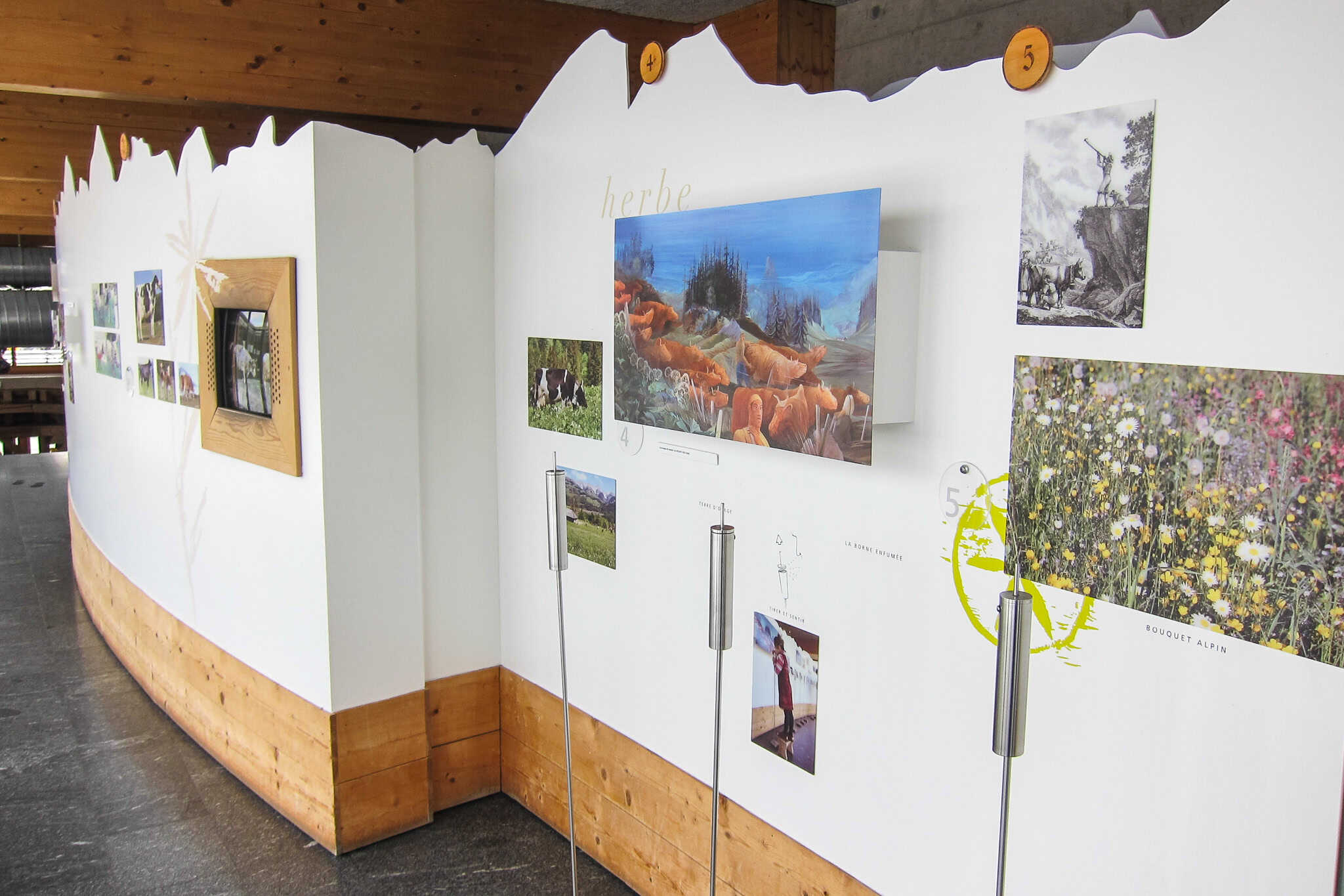 Sie können Ihren Besuch mit einer 30 bis 45-minütigen Führung durch die interaktive Ausstellung beginnen. Sie erhalten ein Headset mit Audioinformationen, die in vielen Sprachen verfügbar sind. Auf diese Weise können Sie die Region, die Kuhherden und ihre Bauern sowie den Prozess der Käseherstellung kennenlernen.
