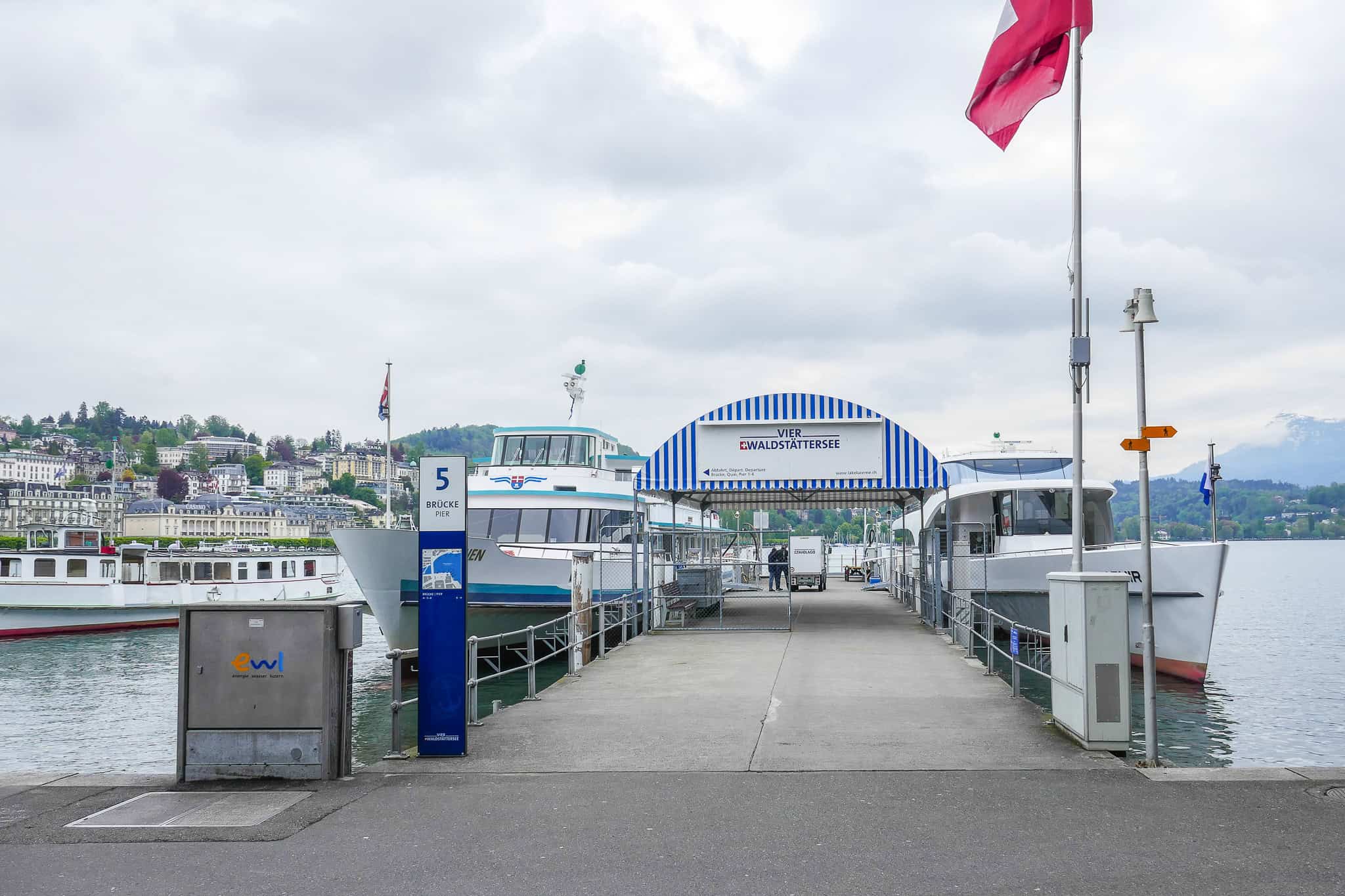 - Der Schiffsterminal in Luzern heißt „Luzern Bahnhofquai“. Auch die Nummer des genauen Bootssteges ist angegeben.