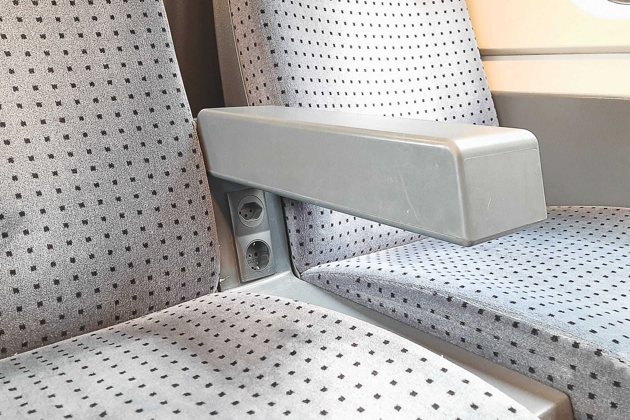 Die meisten Schweizer Züge haben Steckdosen, so dass Sie Ihr Mobiltelefon und andere Geräte während der Fahrt aufladen können. Steckdosen können sich zwischen oder unter den Sitzen, oder an den Wänden unter den Fenstern befinden.