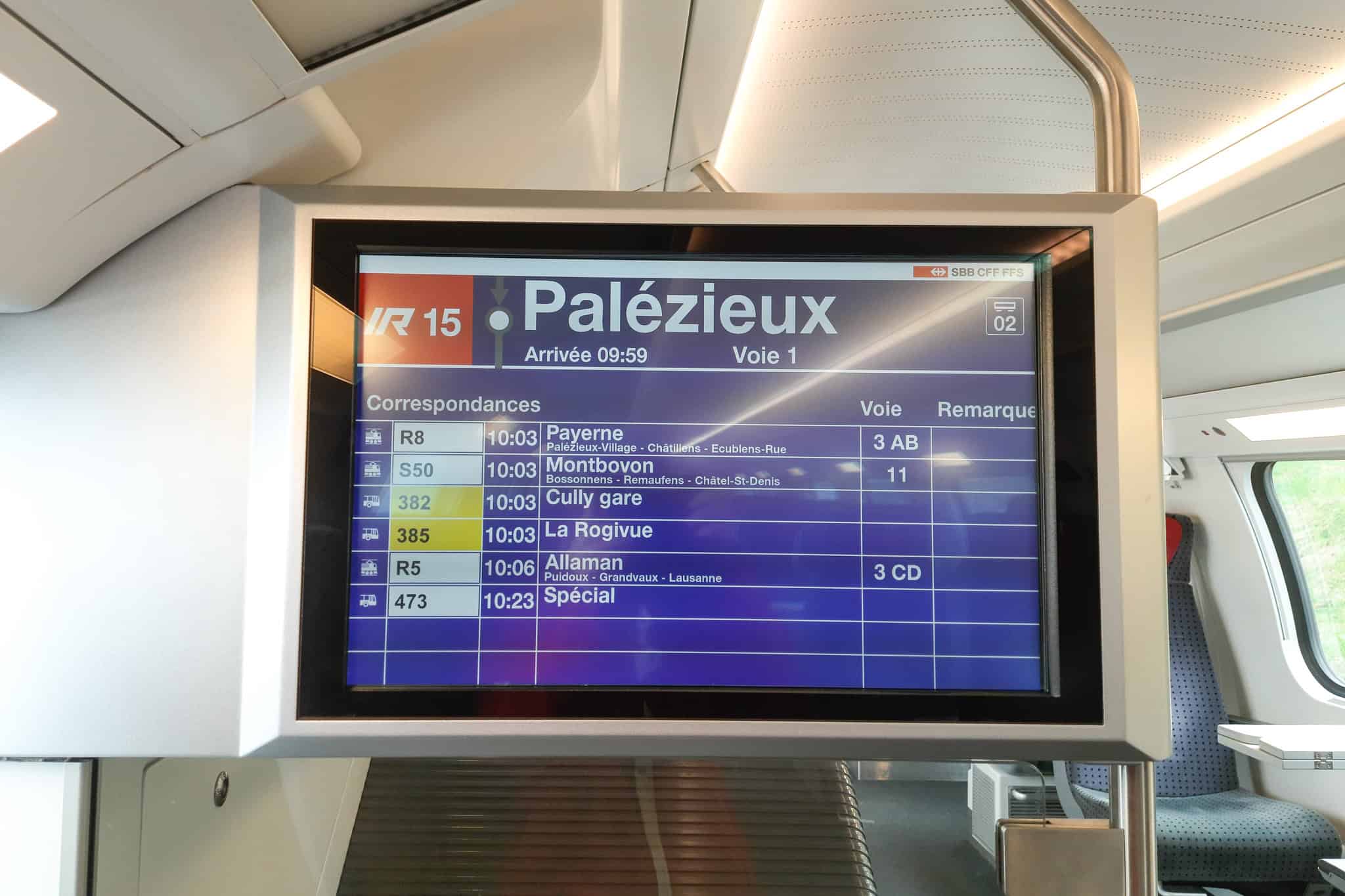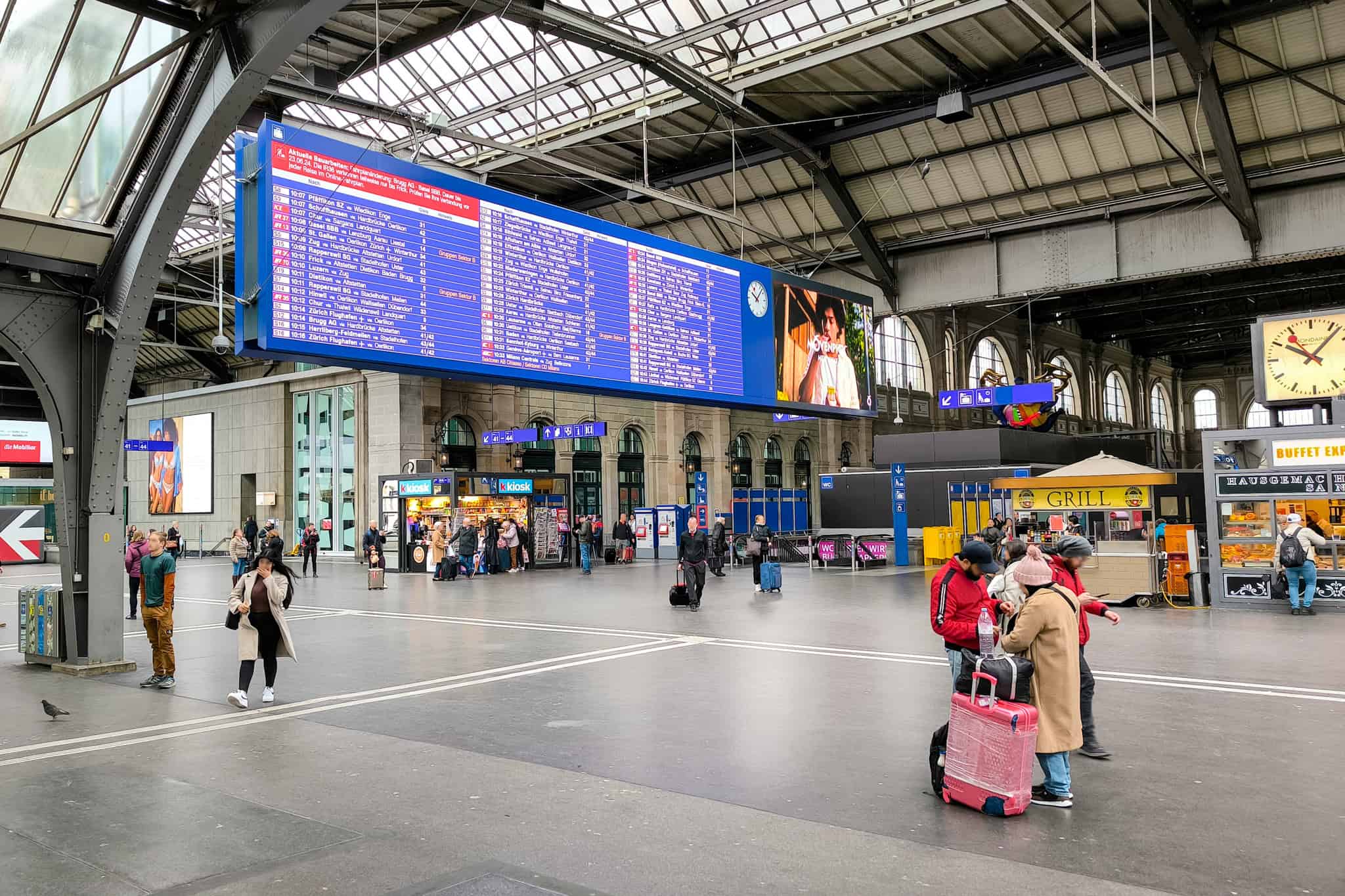 Die Schweizer Züge sind normalerweise sehr pünktlich. Es kann jedoch zu Verzögerungen kommen. Die Anzeigen am Bahnhof geben die Verspätung und die voraussichtliche Ankunftszeit an. Bei größeren Verspätungen gibt es oft auch Lautsprecher-Durchsagen. Sie werden in der Regel auf Deutsch, aber auch auf Englisch angeboten, vor allem an den größeren Bahnhöfen.